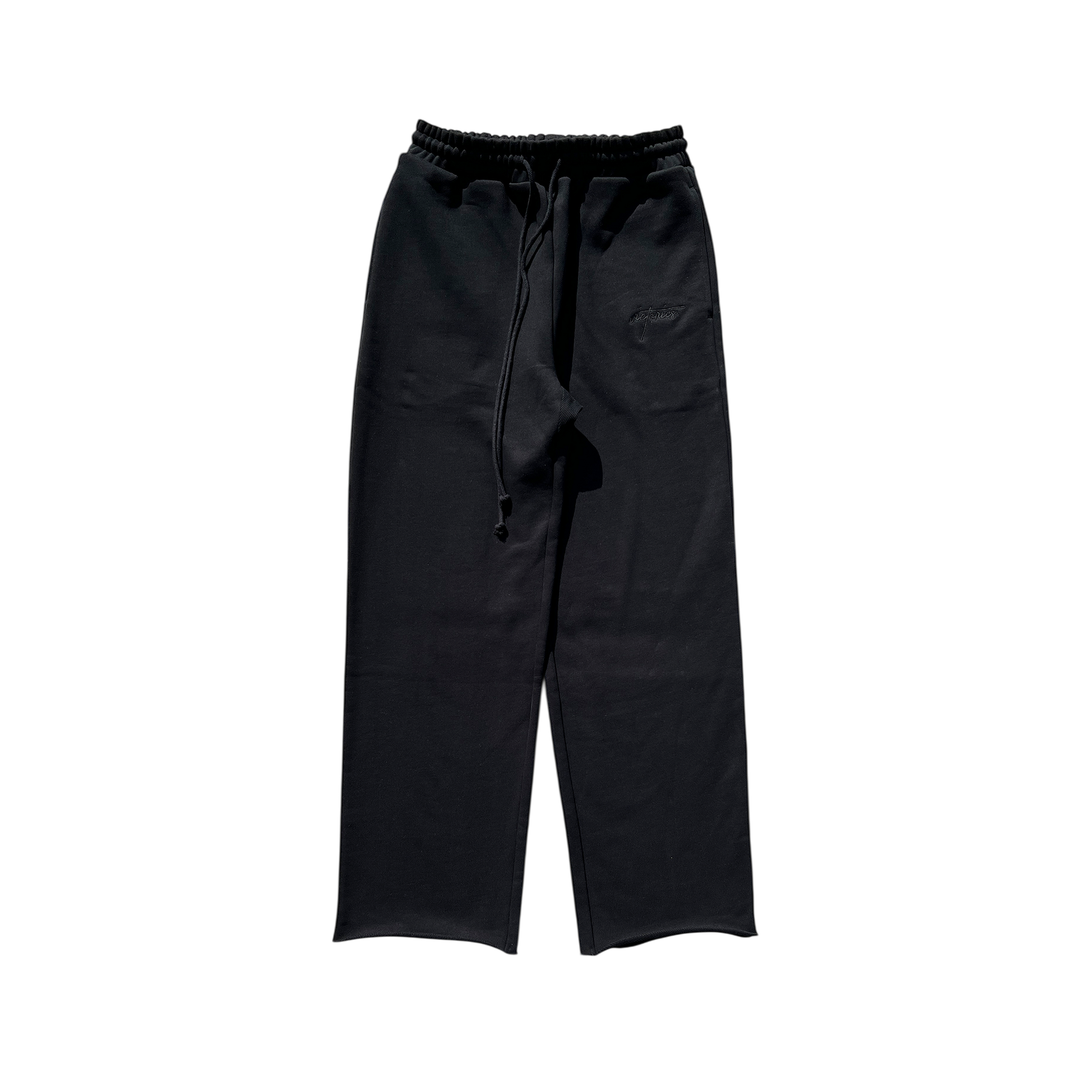midweight cotton sweats, straight leg fit, embroidery detail